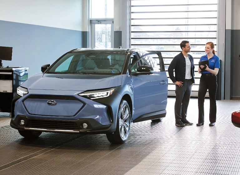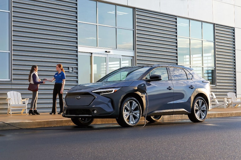 At home, your options are Level I or Level II charging. We can help arrange a Level II charging port installation with a licensed professional. Most Solterra owners choose to recharge overnight with the bonus of lower electricity rates during that time and worry-free charging. While it may seem counterintuitive, constantly charging 100% is not good for the battery's health. It's best to keep driving until the Solterra falls below a 30 percent charge. An 80 percent charge should last most drivers a few days.