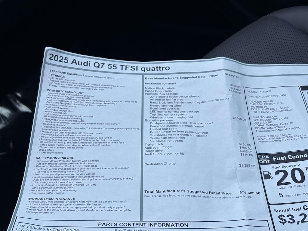 2025 Audi Q7 55 Premium Plus quattro in Mythos Black Metallic over Pando Gray Leather Interior quattro 8-Speed Automatic with Tiptronic 3.0L TFSI