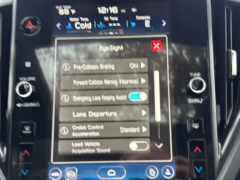 - Lane departure: EyeSight Lane Keep Assist active