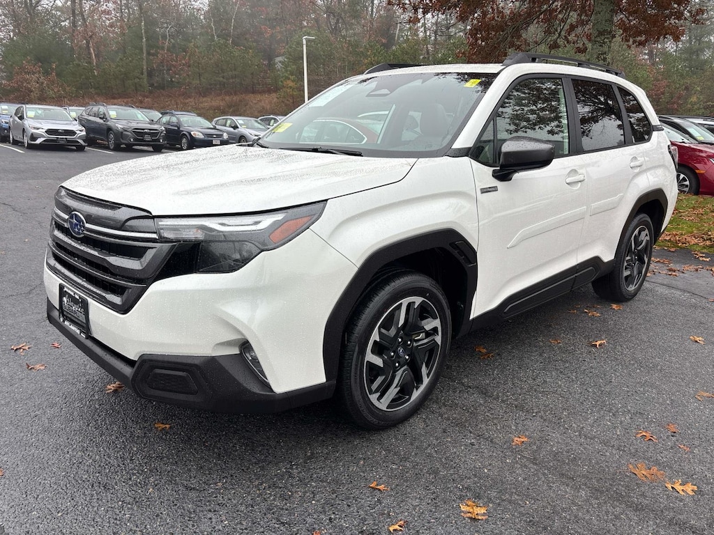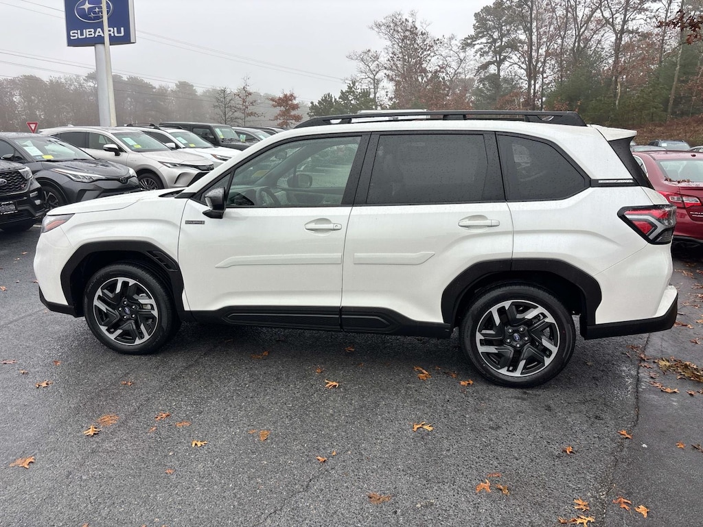 2025 Subaru Forester Hybrid Premium in Crystal White Pearl over Gray Cloth Interior AWD Lineartronic CVT 2.5L 4-Cylinder DOHC 16V